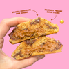 The Hazelnut Dubai Cookie features our Belgian choc chip cookie dough, filled with a luscious hazelnut praline that's blended with crisp kataifi pastry for that viral Dubai crunch. Each cookie is finished with a delicate sprinkle of golden kataifi on top!